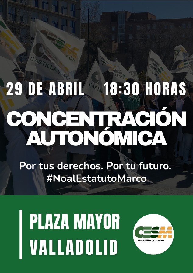 El sindicato médico CESM convoca una concentración autonómica el próximo 29 de abril en Valladolid para defender los derechos y el futuro de la profesión médica.